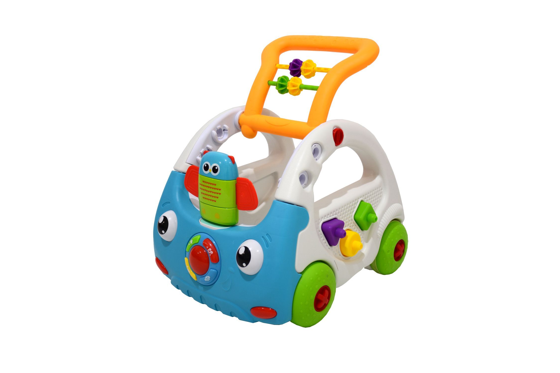 Baby walker Tinggi handle yang bisa diatur dan memiliki 3 mode tinggi Mainan burung hantu yang berputar, menambah minat visual dan mengembangkan keterampilan motorik 3 blok bangunan, berbagai bentuk warna 4 tombol fungsi, suara dan musik dengan lampu Mata yang bisa berputar mengubah efek suara dengan cahaya.