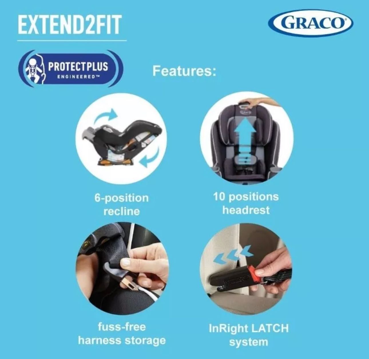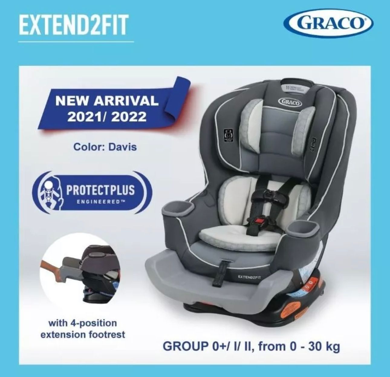 Graco Extend 2Fit - Davis merupakan car seat yang dapat digunakan dari bayi baru lahir hingga berat anak 30 kg (Group 0+/I/II)