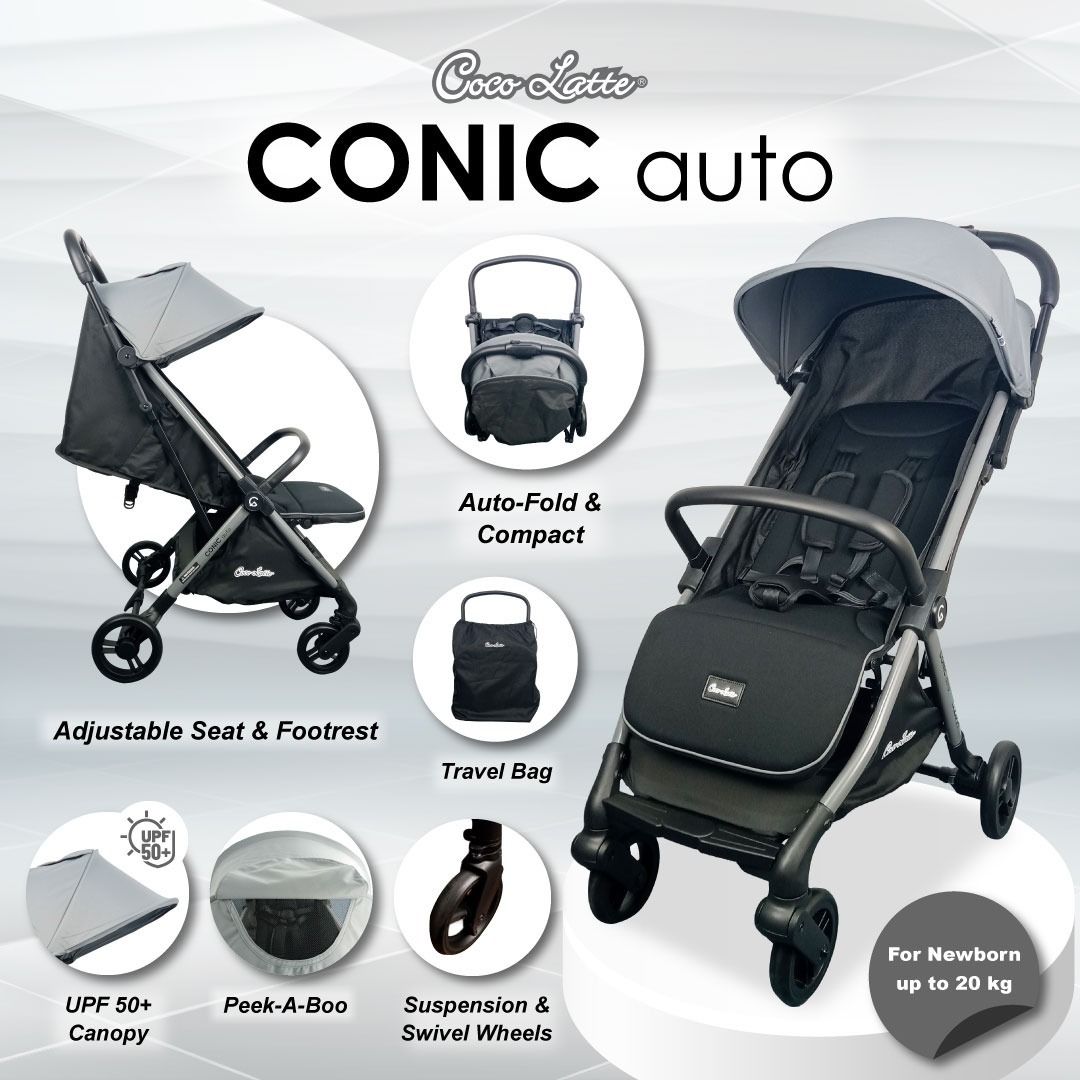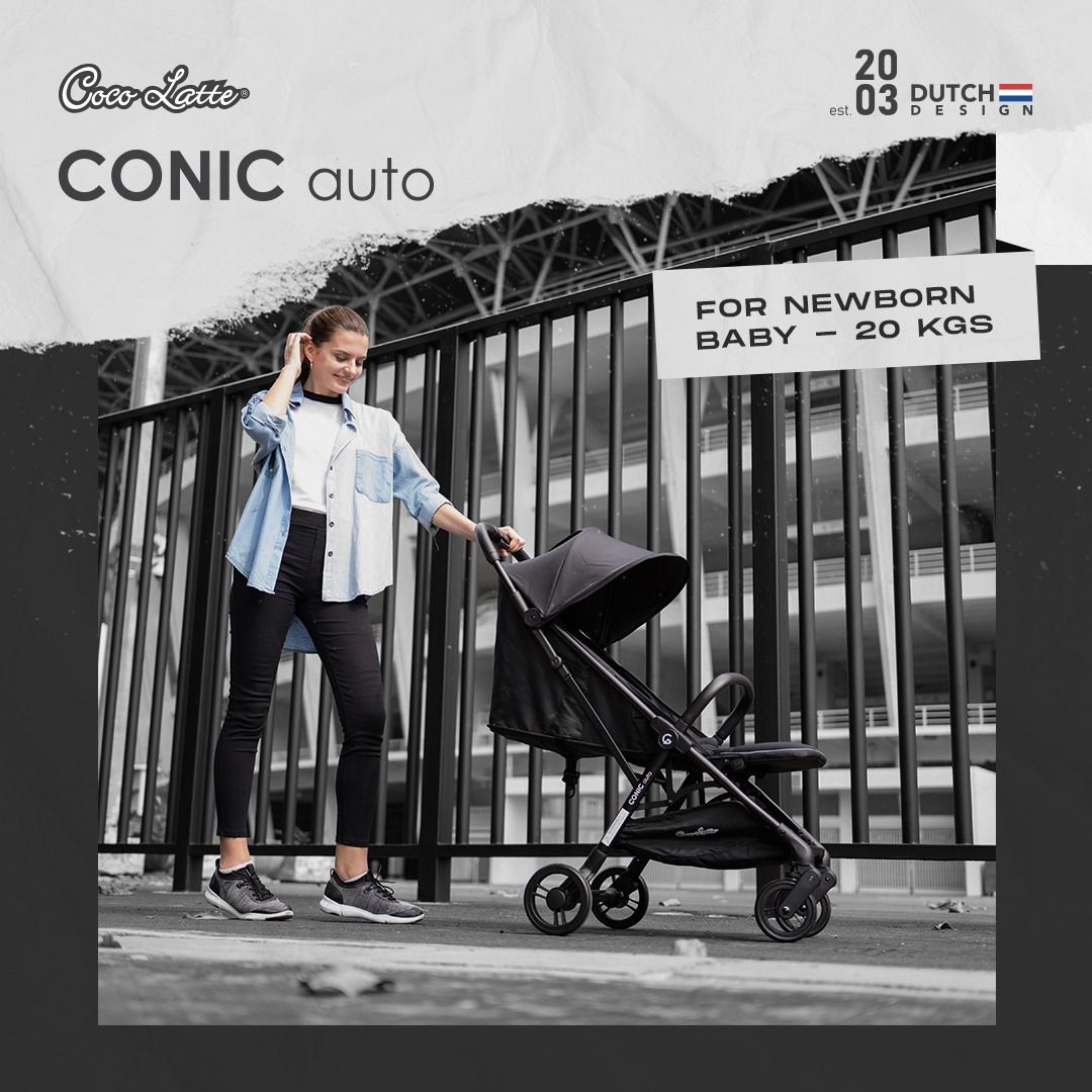 Cocolatte Conic Auto memberikan kemudahan kepada moms & dads dalam membawa si kecil dengan stroller. Roda yang berputar penuh pada Conic Auto sangat berfungsi saat membawa si kecil di tempat keramaian, seperti masuk ke dalam lift. Tidak perlu repot untuk memutar stroller karena sudah dilengkapi dengan 360 swivel front wheels.