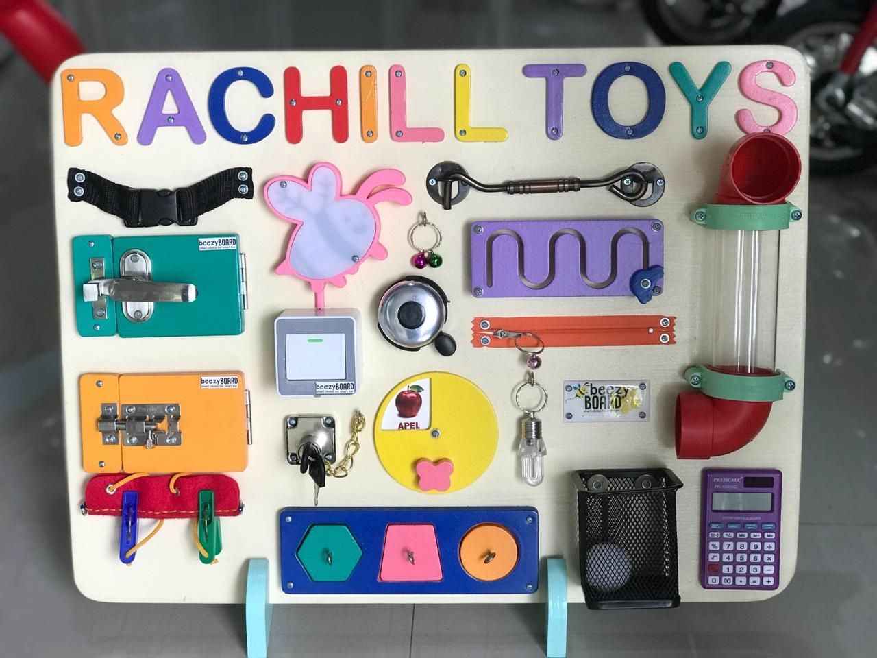 Beezyboard adalah mainan untuk stimulasi motorik halus dan kasar, kemampuan kognitif, proprioseptif, auditory dan visual pada anak.