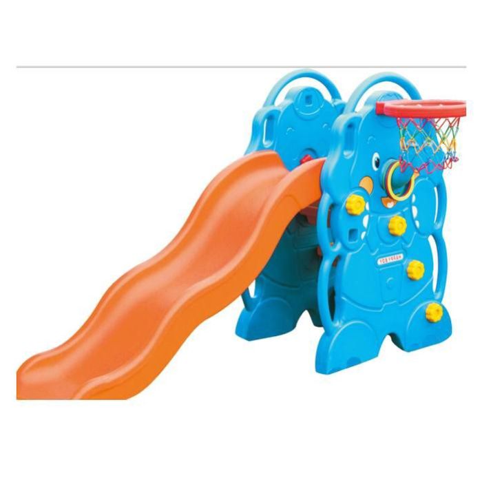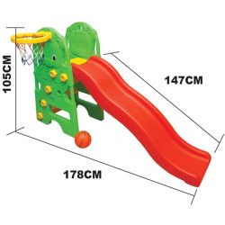 Terdiri dari sebuah perosotan, ring basket, dan bola basket