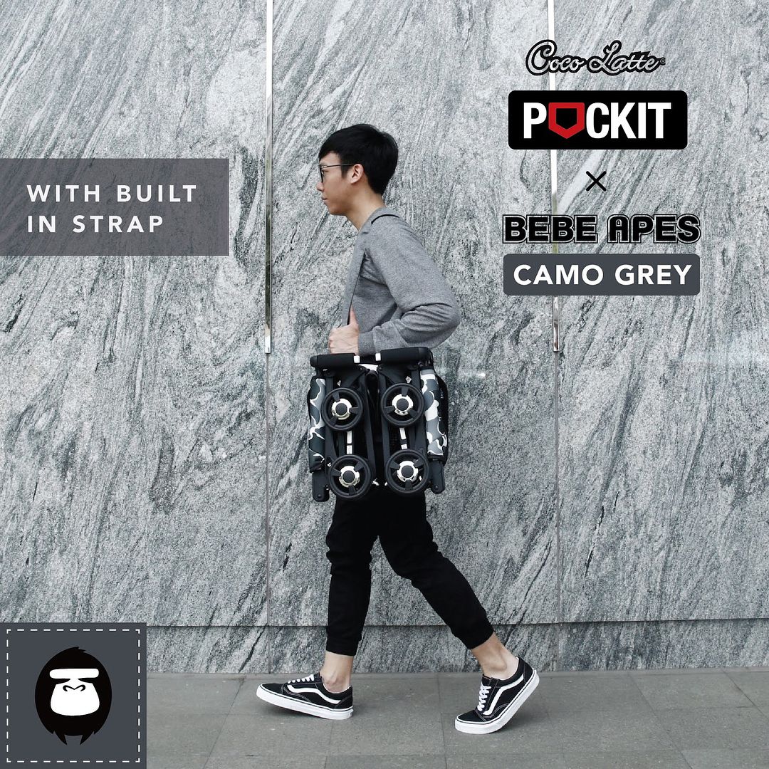 Cocolatte Stroller Pockit CL 839 X Bebe Apes dengan army pattern, sangat cocok untuk Parents yang hobi traveling dengan si kecil, dengan ukuran stroller yang sangat compaq & cabin size membuat stroller ini mudah dibawa kemana saja, berat stroller yang hanya 5kg, serta sangat mudah dilipat dan dibuka kembali.